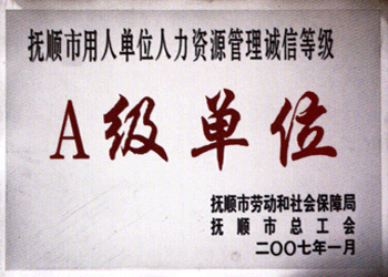 撫順市用人單位人力資源管理誠信等級A汲單位